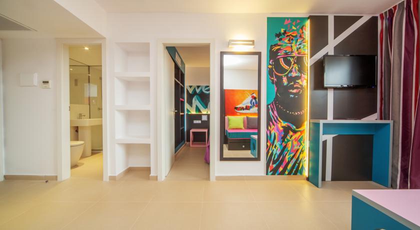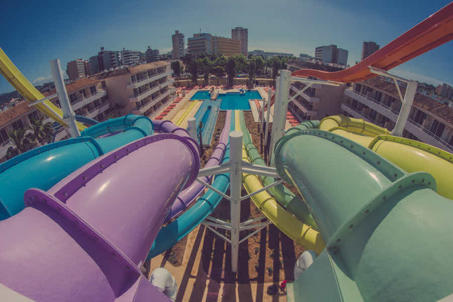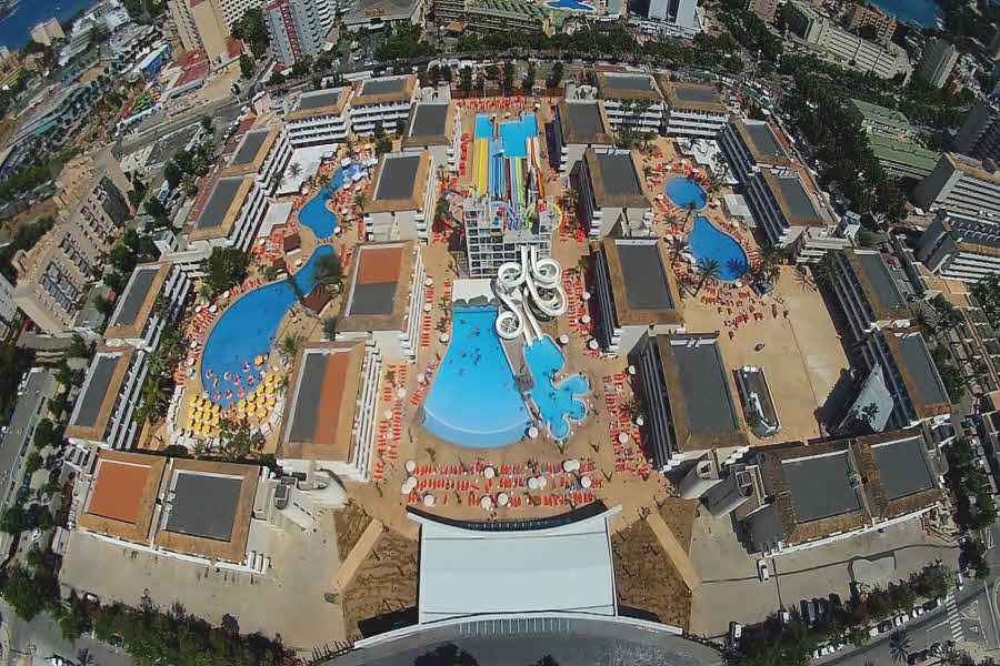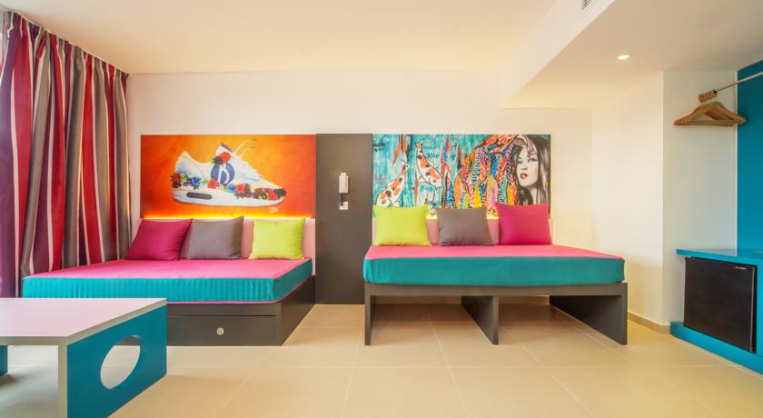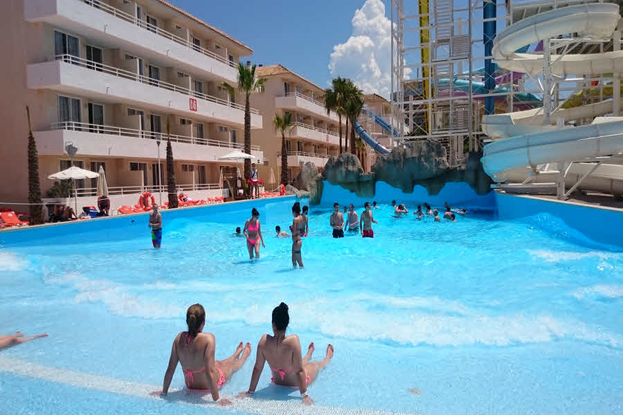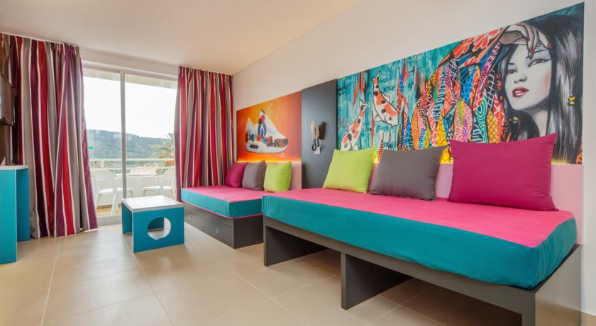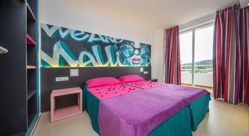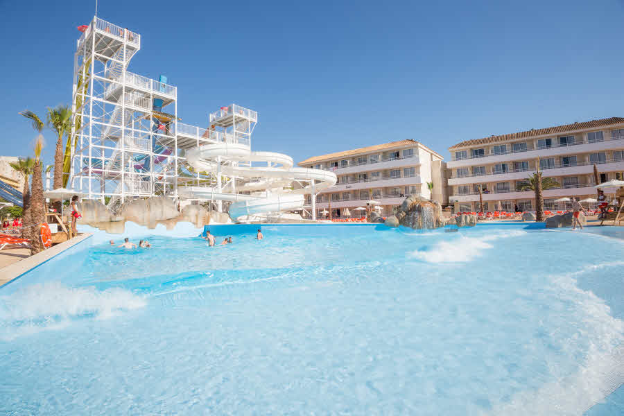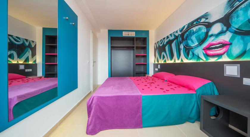 This modern and comfortable hotel has been totally refurbished in 2014 and is the ideal choice of accommodation for groups of friends who wish to enjoy a unique experience and have lots of fun. The property is a stones throw from the beautiful sandy beach and surrounded by several entertainment and dining venues, allowing its visitors to have a pleasant and fun stay in this part of the island. The hotel counts with several accommodation units, all of them boasting a contemporary style and state-of-the-art amenities. They offer a friendly and chic look and have practical features like a walk-in shower. Superior facilities include a stage where everyone can enjoy live music, an adults-only water park and a beach club to relax with a drink. Those who wish to keep fit during their holidays can do it at the on-site gym and everyone may sample the tasty dishes at the hotels restaurants..